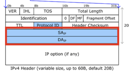 인터넷 레이어(Internet Layer)에는 IP 헤더가 들어간다. 여기서 중요한 것은 SA(출발지 IP주소)와 DA(목적지 IP)주소이다. 지금은 도메인 밖에 모르기 때문에 도메인 정보로 목적지 IP주소를 알아내야합니다. 따라서 도메인 서버에 DNS 쿼리를 보내고 IP 주소로 응답받는다.